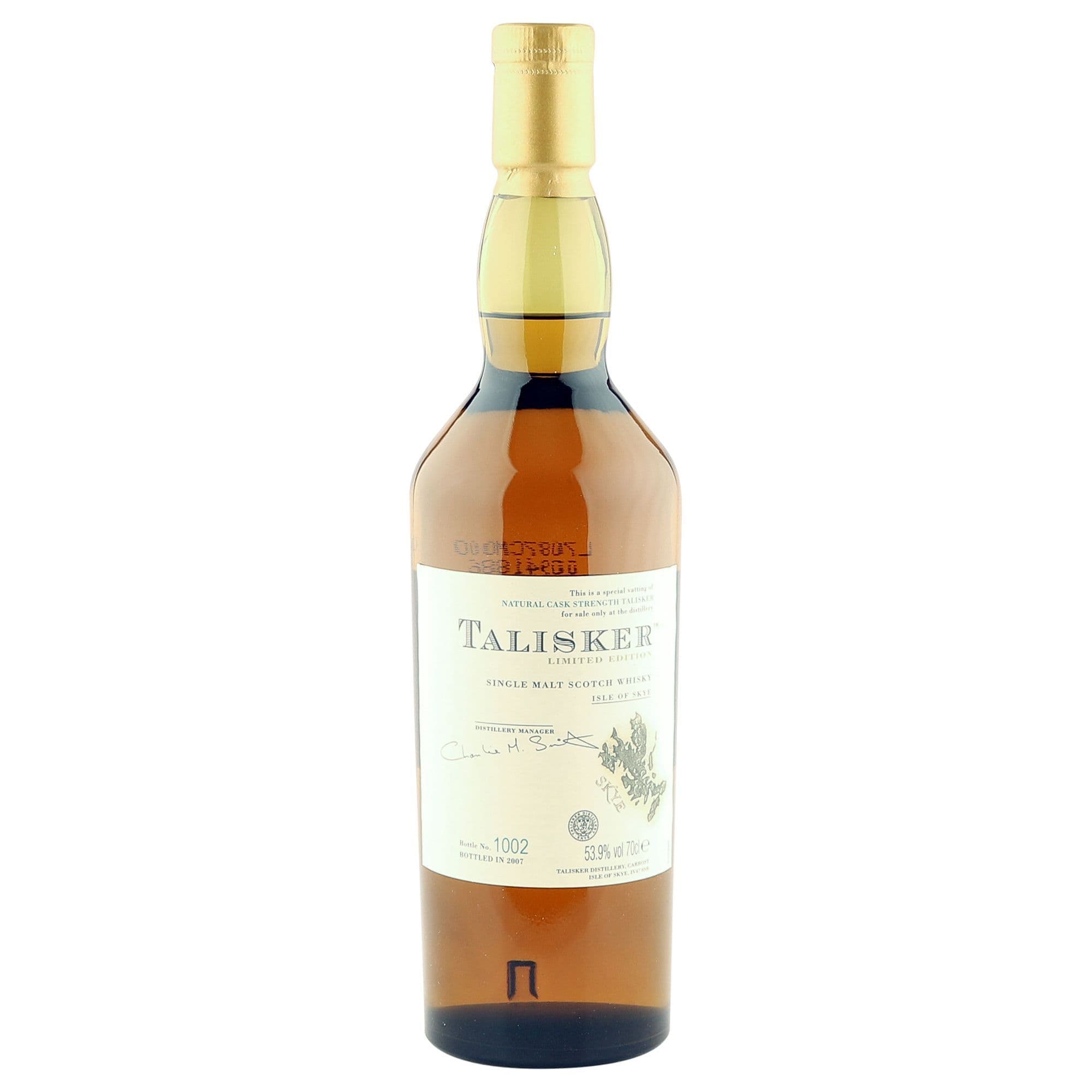This special vatting of Talisker single malt was bottled as a No-Age-Statement whisky and released in 2007 to be made available for sale only from the distillery.